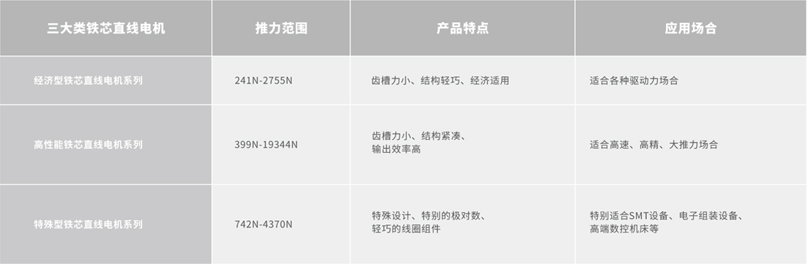 有推力大,推力波纹小、高加速能力、低发热等突出特点。